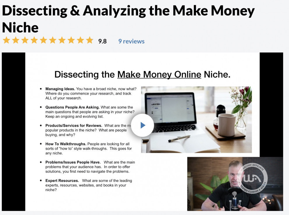 Here is an example of one such class, where Kyle spends over an hour breaking down one of the most lucrative niches online, the “make money” niche and the opportunities within it.